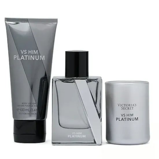 Kit de perfume Victoria’s Secret VS Him Platinum 3 Uni 50ML + 100ML + Body