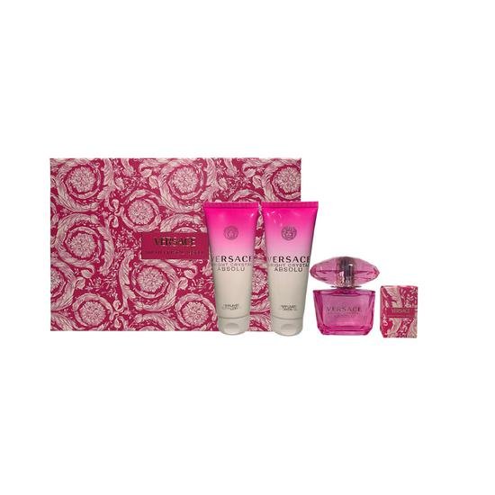 Versace Bright Crystal Absolu Eau de Parfum Kit Perfume 90ML +5ML + Loción Corporal 100ML + Gel de Ducha 100ML